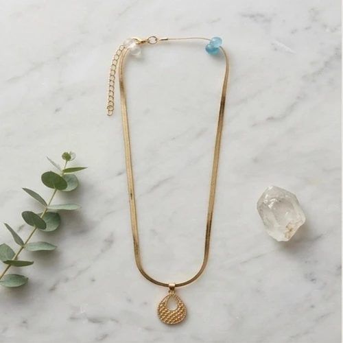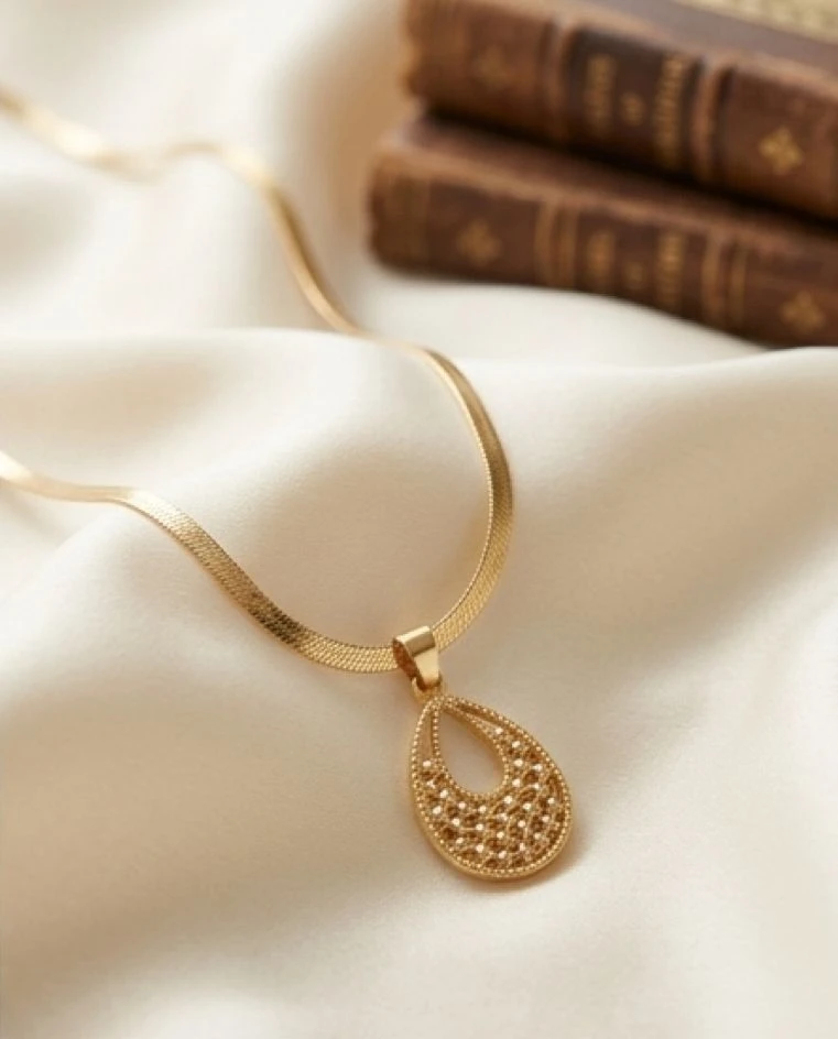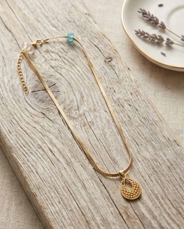 Elevate your everyday style with the Aurelia Teardrop Necklace. Featuring a sleek, flat-link chain and a delicately textured pendant, this piece blends modern minimalism with traditional craftsmanship. The warm gold-tone finish catches the light beautifully, making it the perfect statement of effortless elegance.